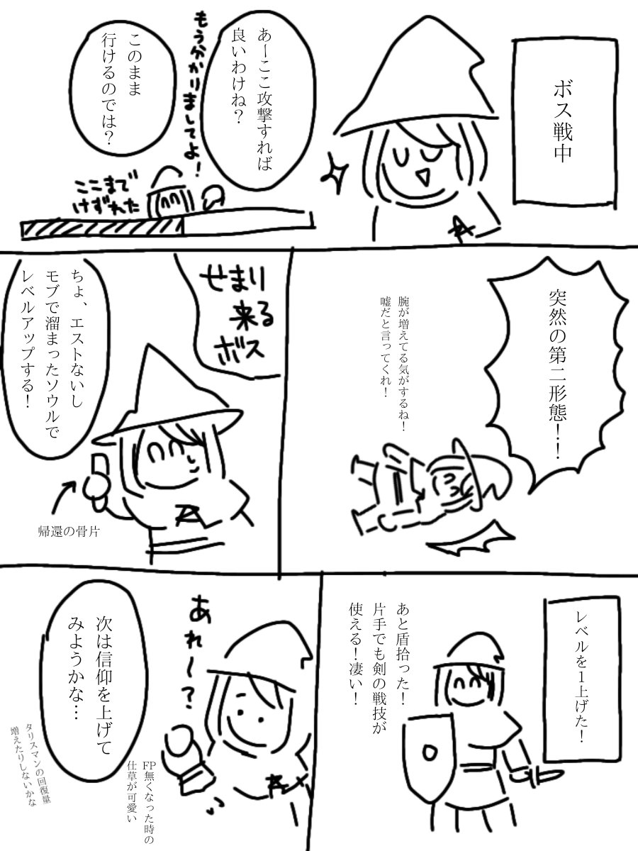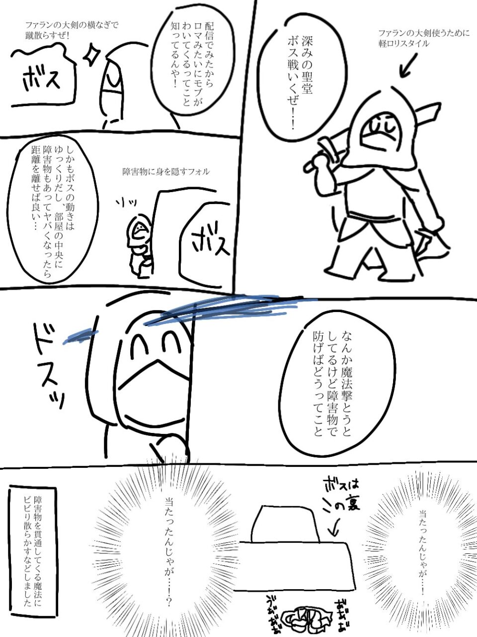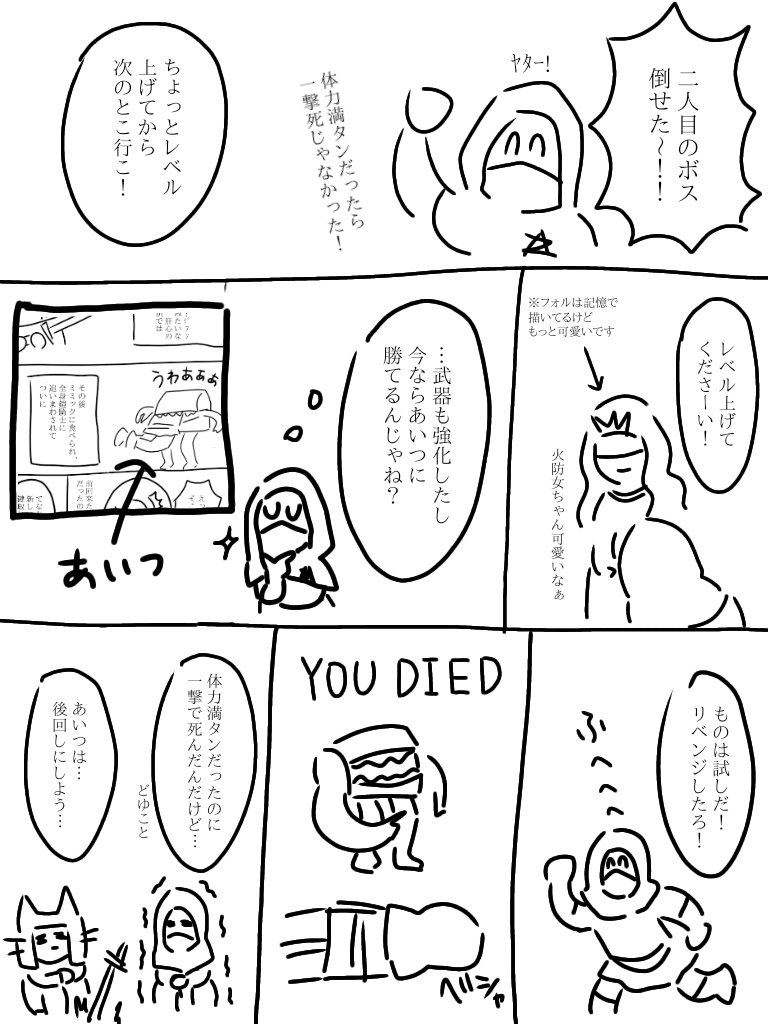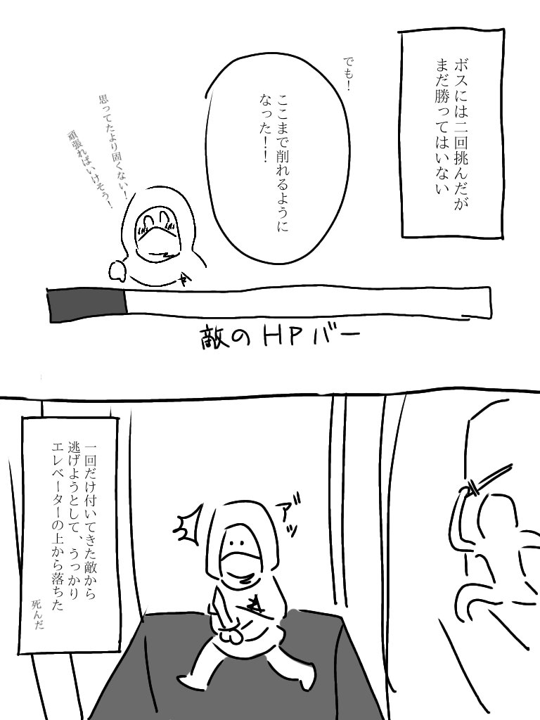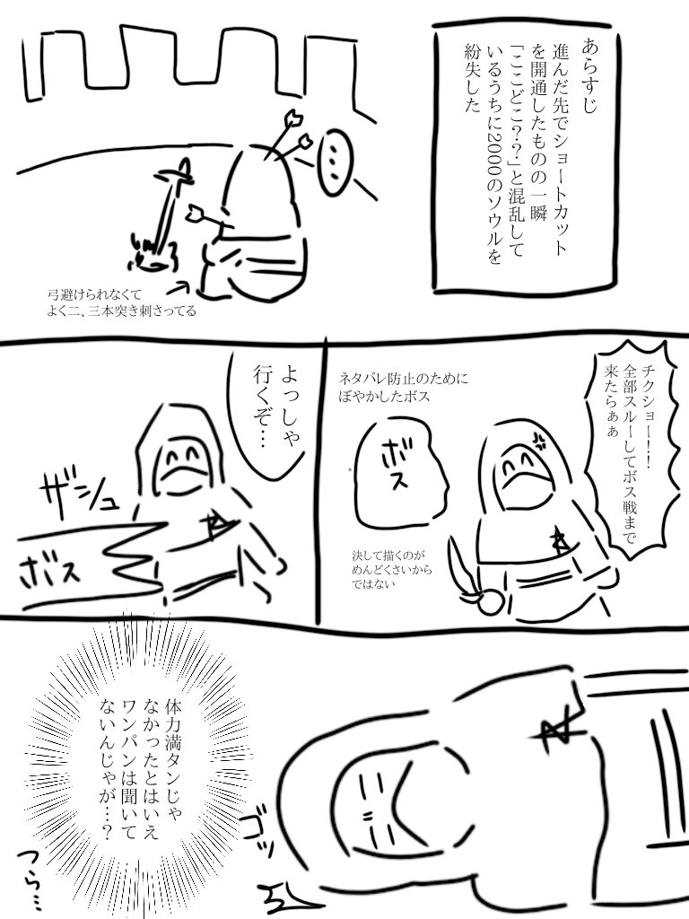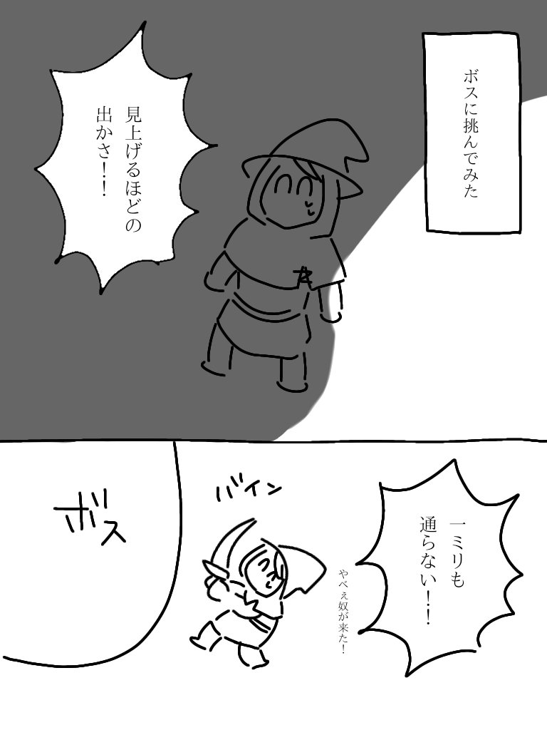 ネタバレ防止でふにゃふにゃに描きすぎて、実は私もどのボスの話か分かりません。
