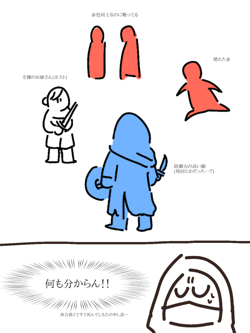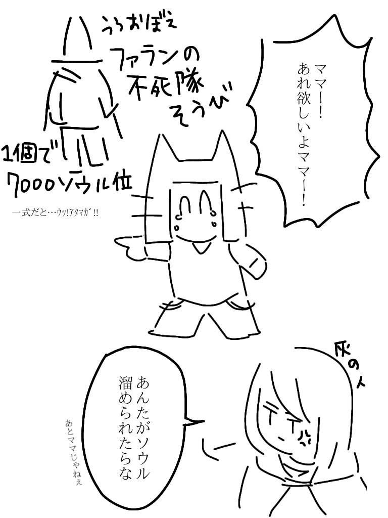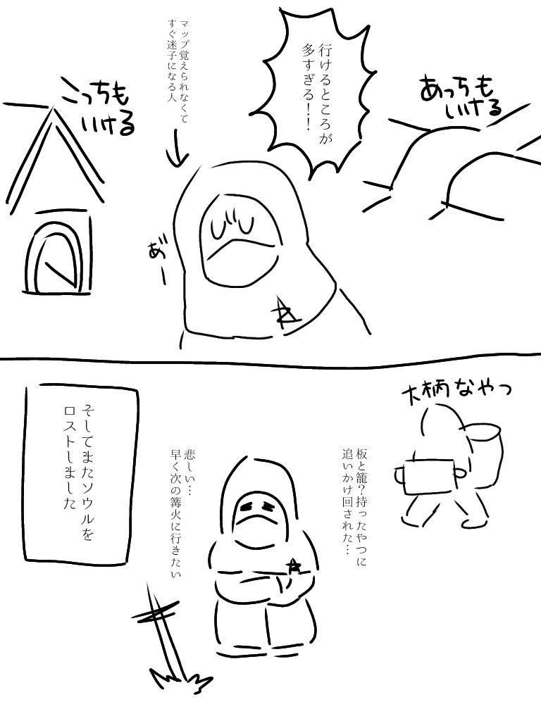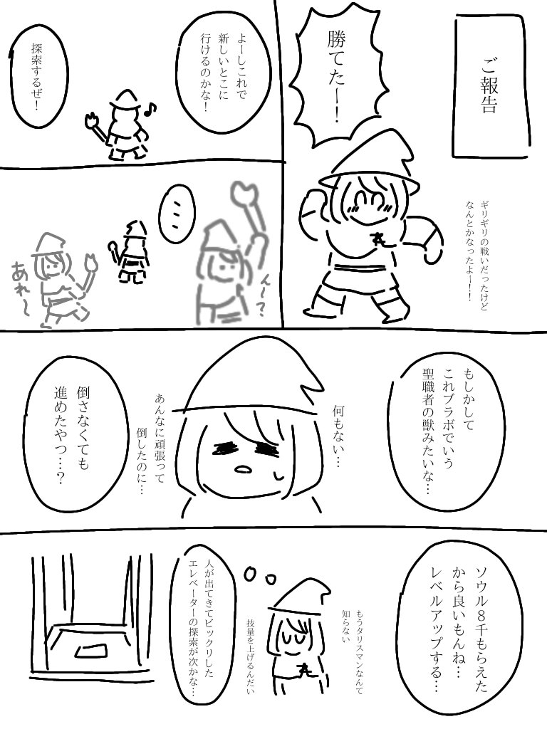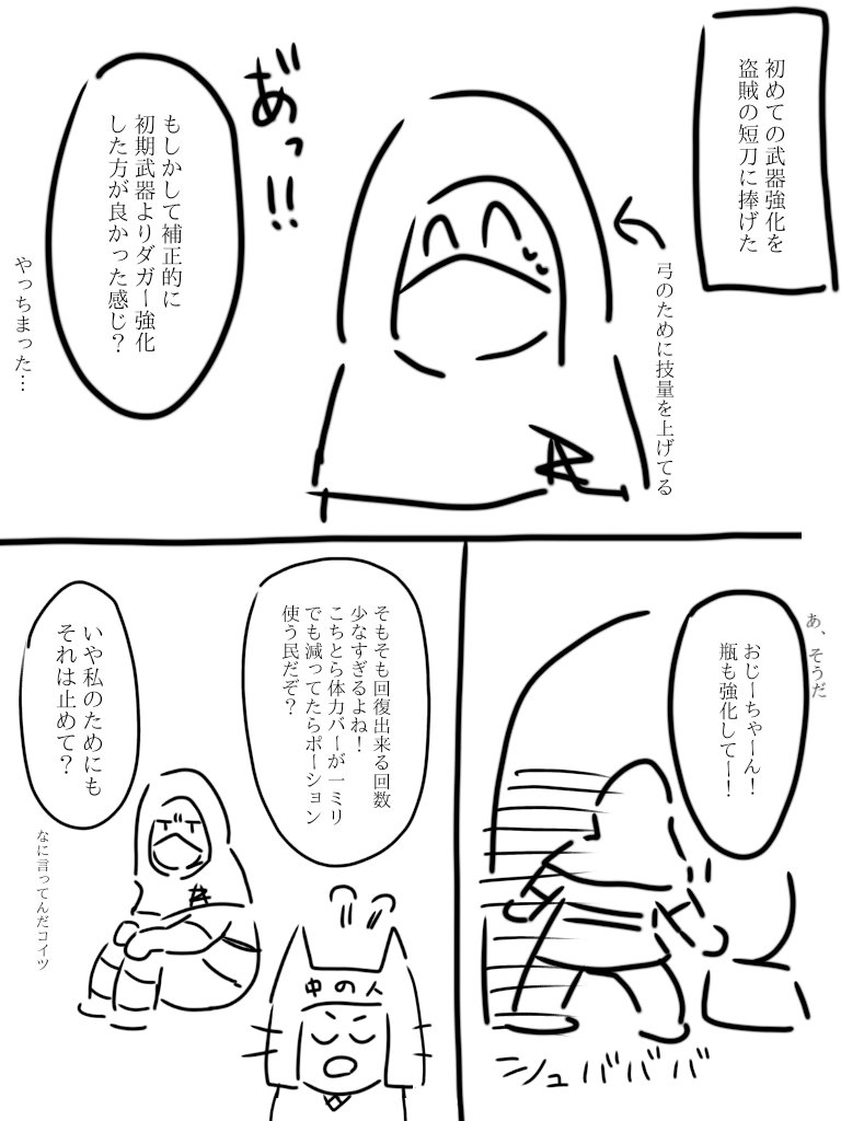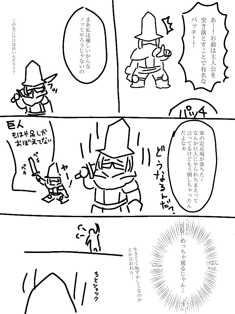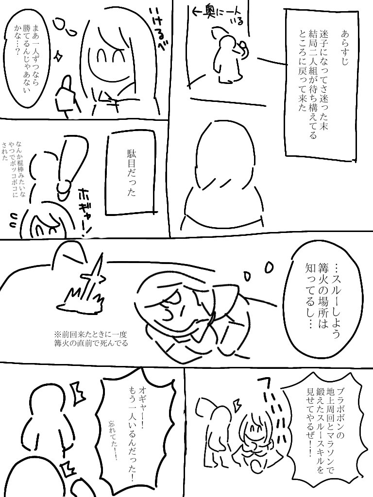 ネタバレ防止でふにゃふにゃに描きすぎて、実は私もどのボスの話か分かりません。